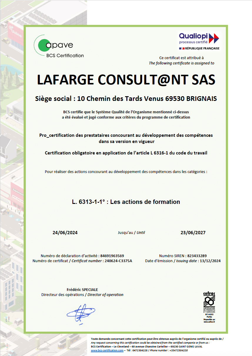 Lafarge Consultant propose des formations professionnelles ciblées, concrètes et immédiatement opérationnelles,